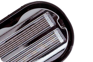 Лезвия в сменяемых картриджах (5 лезвий в каждом) направлены друг на друга, чтобы каждое движение приносило результат.